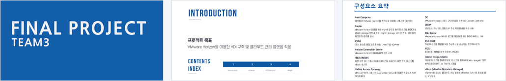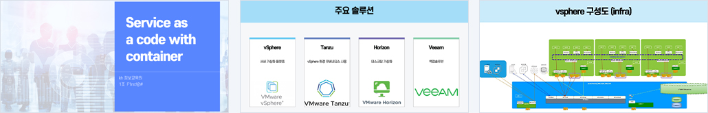 부하분산을 이용한 고가용성 지원하는 vsphere 환경을 구성한다 컨테이너 기반 kubernetes 구성 망분리 VDI를 구성 |